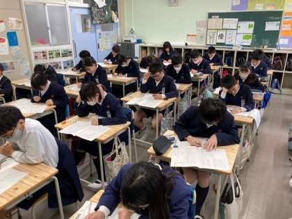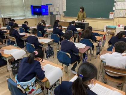 二日間にわたり実施する大阪市小学校学力経年調査が始まりました。今日は、国語と社会、児童への質問紙(アンケート)です。大阪市の3年生〜6年生が取り組んでいます。現在は、国語の問題を解いています。緊張感のある教室には、鉛筆の音だけが聞こえてきます。最後まで粘り強く解いてほしいものです。