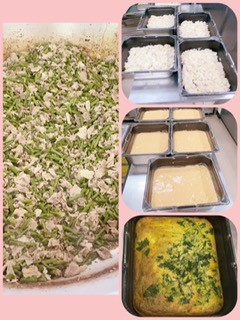 具だくさん卵の千草焼きは、ささみ、とうふ、コーン、液卵、だしを入れた上からみつばをちらして、焼き物機で蒸し焼きしてます。