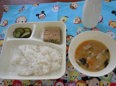 今日は「お好み焼き・豚汁・ごはん・お漬物?」の揃った、大阪名物「お好み焼き定食」でした。
