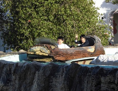 園内は比較的空いていて、多くの乗り物が0分から10分程度の待ち時間で乗れ、子どもたちは休む暇もなく、アトラクションを堪能しています。