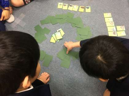 百人一首の札に描かれている絵を見て、昔の人が着ている服装も知ることができました。