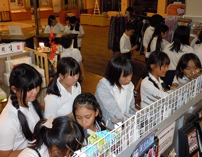 お風呂に入る時間と交代でホテル内の売店でお財布の中身を確認しながら選んでいました。