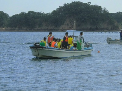 かご漁では、クラスで3隻の漁船に分乗し、かごを仕掛けている沖合へと向かいました。