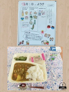 今日のチキンレバーカレーライスは子どもたちに大人気の献立です。スイートポテトも人気でした。