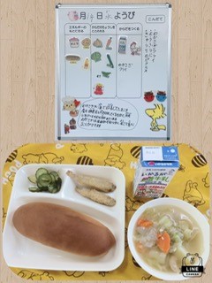 今日の給食も、みんな残さず好き嫌いなく食べていました。