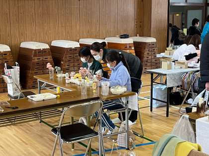 講堂後方では、さまざまな体験活動や掲示物で楽しむことができます♪