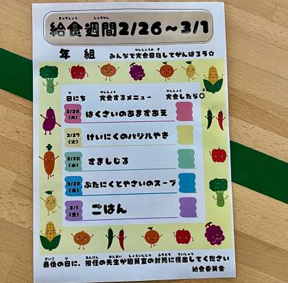 今週は、特に好き嫌いをなくし、完食をめざしています!
