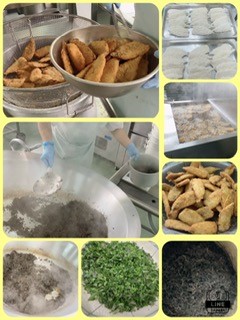 いわしフライは、冷凍のいわしフライをなたね油であげています。今日のいわしフライは骨ごと食べることができるので、骨や歯をじょうぶにするカルシウムもたくさんとることができます。