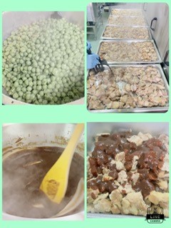 きな粉よもぎだんごは、ゆでたよもぎだんごにみつをからませ、配缶した後にきな粉をまぶして食べます。春を感じる献立の一つです。