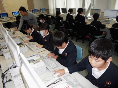 5年生のこのクラスでは、水曜日に実施する社会見学「ダイハツ工場見学」に向けて、インターネットを使い、当日に見学する施設を事前学習していました。