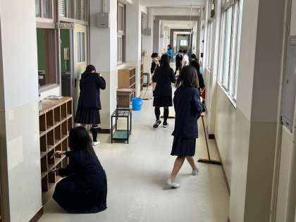 講堂だけでなく、廊下、階段、トイレ、1年生の教室清掃等さまざまな所を整えてくれています。