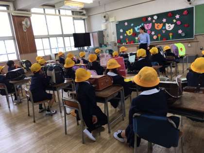 今日はトイレや手洗い場の使い方、プリントをもらったときのしまい方などを先生といっしょに確認しました。
