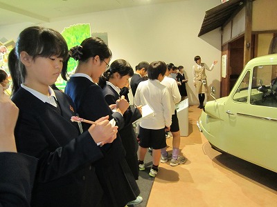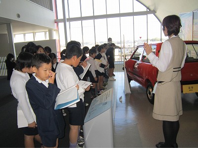 クルマの用途と発展のコーナーでは、1950年代の「ミゼット」から現在のエコカー「ミラ・イース」までの時代とともに移り変わっていったクルマについて説明を受けました。