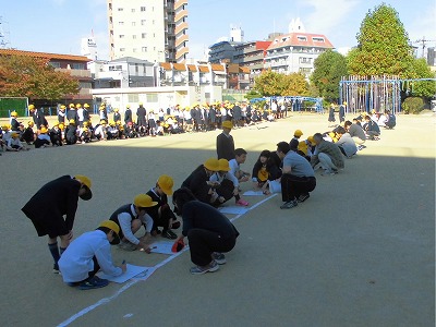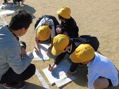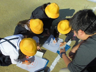 たて割り班で、担当の先生の似顔絵を、顔の輪郭、目、耳、口など、パーツごとにリレー形式で描き足していくものでした。