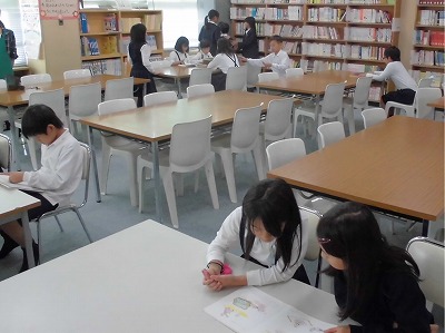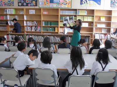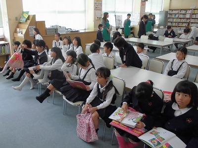 2限目が終わると各教室から子どもたちが図書室に集まってきました。