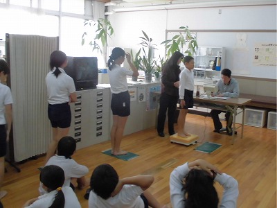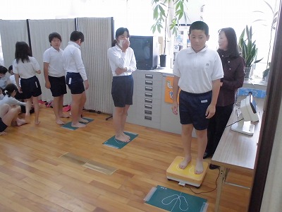 測定の前には保健室の先生から、寒くなり、風邪やインフルエンザの季節を迎える前に、鼻の役目、うがいの重要性や正しい仕方などについてのお話を聞きました。