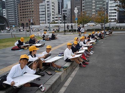 4年生は、中之島の公会堂へ写生会に出かけました。