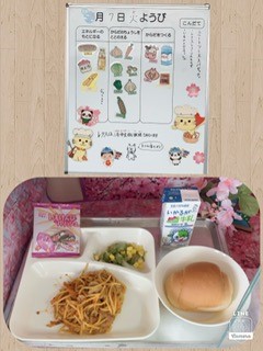 今日のミートソーススパゲッティは上新粉を使っているので、あっさりしていました。高学年で違いがわかる児童がいて、さすがだなと感心しました。