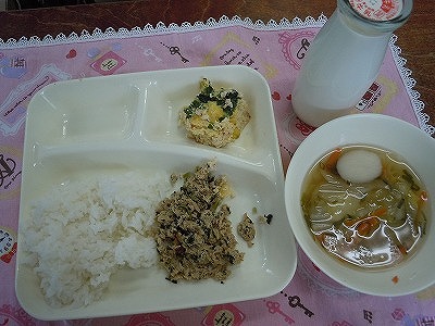 「ツナっ葉いため」は、ツナ缶にだいこんの葉を細かく刻んだものを入れ、味付けをして炒めてありました。ごはんのお供として最高でした。