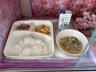 今日は、給食室でさやから取り出したえんどうを使っています。