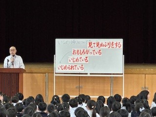 朝会の時間を活用して、全校児童でいじめ(命)について考えました。