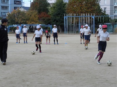 体育の授業ぐらいしかサッカーの体験がない子どもたちでしたが、チームに分かれての試合では、ゴールを決めるなどナイスプレイがたくさん観られました。