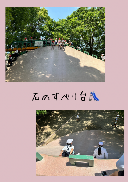 大きな石のすべり台に、木のアスレチックに、ブランコに…思い思いに遊びました。