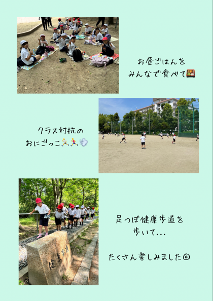 みんなでお昼ご飯を食べて、クラス対抗のおにごっこをして、足つぼをきたえて…
