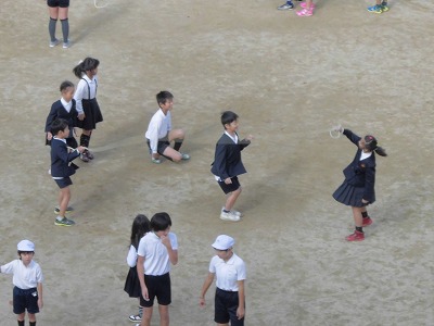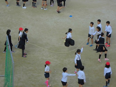 昨日に引き続き、15分休みにはたて割り班での長なわとびです。