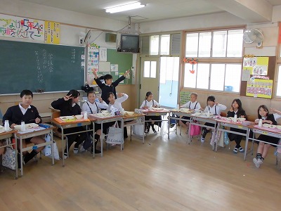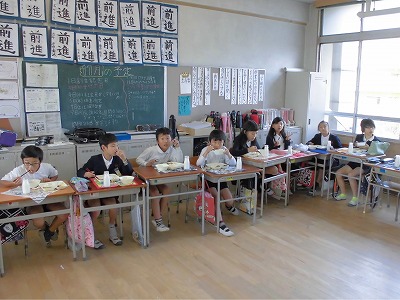 各クラスの半分くらいの児童が交換され、一緒に給食を食べます。