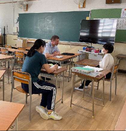外国語のspeakingテストがありました。先生に英語で自己紹介をしています。言葉だけではなく、ジェスチャーも加えて伝えることができました。
