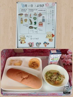 変わりピザとミックスフルーツは、児童に人気の献立です。