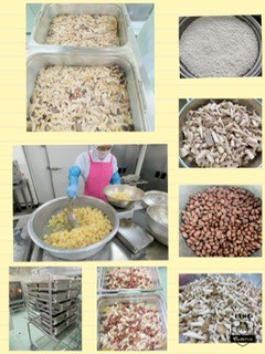 金時豆の中華おこわは、もち米に焼き豚、金時豆、しめじを加えて焼き物機で蒸し焼きにしています。チキンブイヨンとごま油で、コクと旨みを出した一品です。