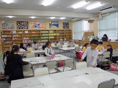 教室で「さようなら」をした後、多くの子どもたちが図書室にやってきます。