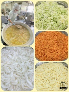 スープは、豚肉を主材に、じゃがいも、キャベツ、たまねぎ、にんじんを使用してます。