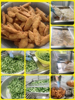 サーモンフライは熱したなたね油であげています。脂っこくなく、食べやすく仕上がっています。サーモンフライ人気でした。