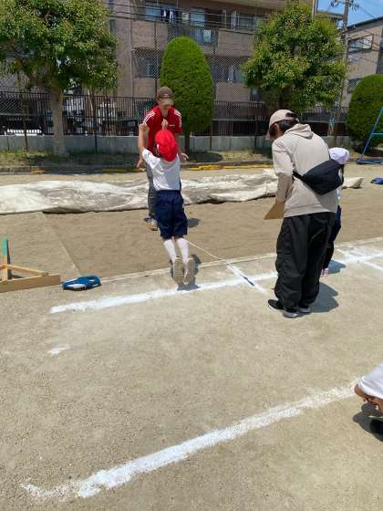 ソフトボール投げ、立ち幅跳び、50m走の記録を取りました。