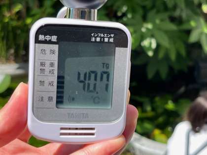 あっという間に40℃を越えました。アスファルトの上だとさらに上昇するでしょうねえ〜。