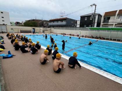 プール開きでは、水の冷たさと浮いたり泳いだりして水泳の面白さを体感していました。