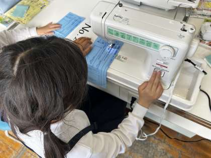 自然体験学習に持っていくナップサック作りに向けてミシンを使い始めました。