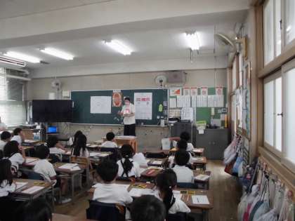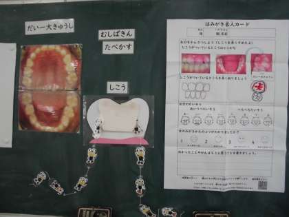 今日は、2年生の歯みがき指導がありました。歯科衛生士の先生が、むし歯にならないために、ていねいな歯のみがき方を教えてくれました。