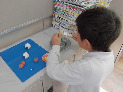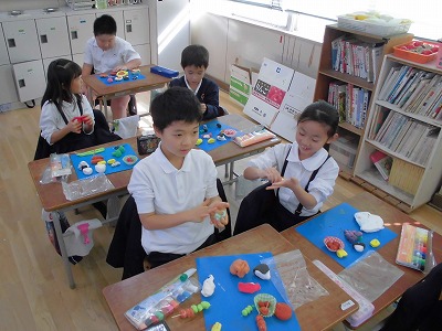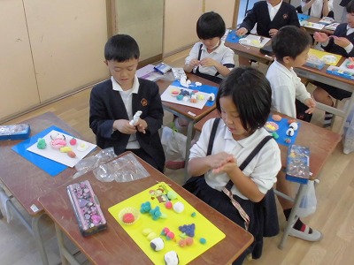 2年生は作品展の立体作品は、紙粘土を使ってのお弁当作りのようです。