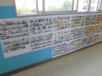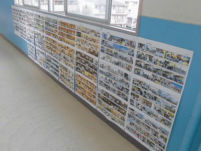 6年生の教室前廊下に、修学旅行写真の展示をしています。