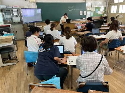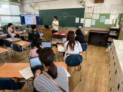 今日はタブレットをもっと授業中に活かそうと自主的に参加し、アプリの体験をしています。