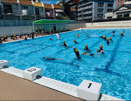 夏休み明けの水泳学習では、1学期末よりも水に慣れ、たくさん潜って、浮くことができる子が増えていました。