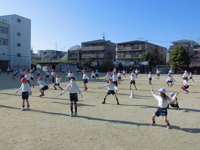 しっかりと準備運動をした後は、継続して取り組んでいる「なわとび」でウォーミングアップです。