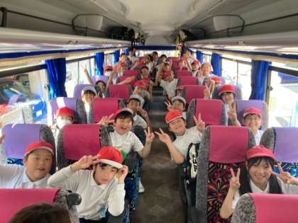 8時5分。バスが出発しました。子どもの笑顔が溢れています。それでは、行ってきます!