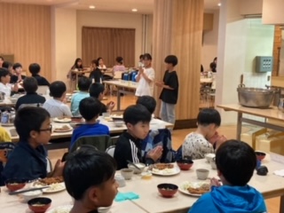 夕食前に検温をしました。全員平熱で、体調を崩す人もいません。夜のキャンプファイヤーには、元気に参加できそうです。
