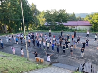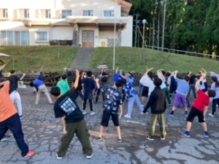 今日のプログラムの確認をした後、ラジオ体操。