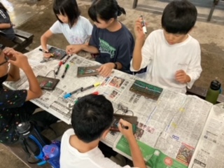 キャンプファイヤーに登山、魚つかみ等!たくさんの思い出を真剣に描いています♪